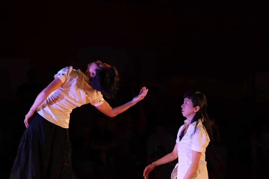 ダンス・⾳楽・美術・照明の即興コラボレーションは、まさに今、舞台上で作品を生みだすという先駆的なパフォーマンス。